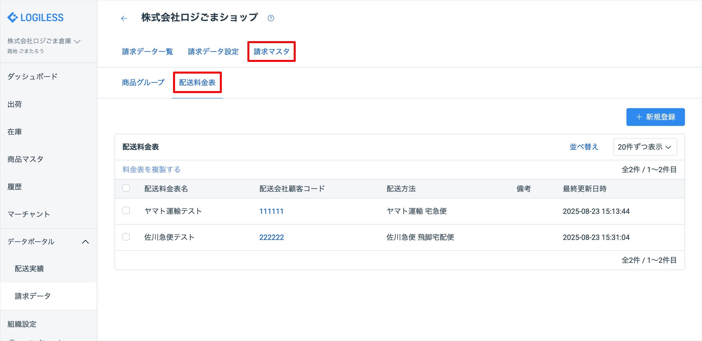 - 配送実績の梱包サイズ、出荷都道府県に対して配送料金表の金額を乗じてマーチャントへの請求金額を集計することができる