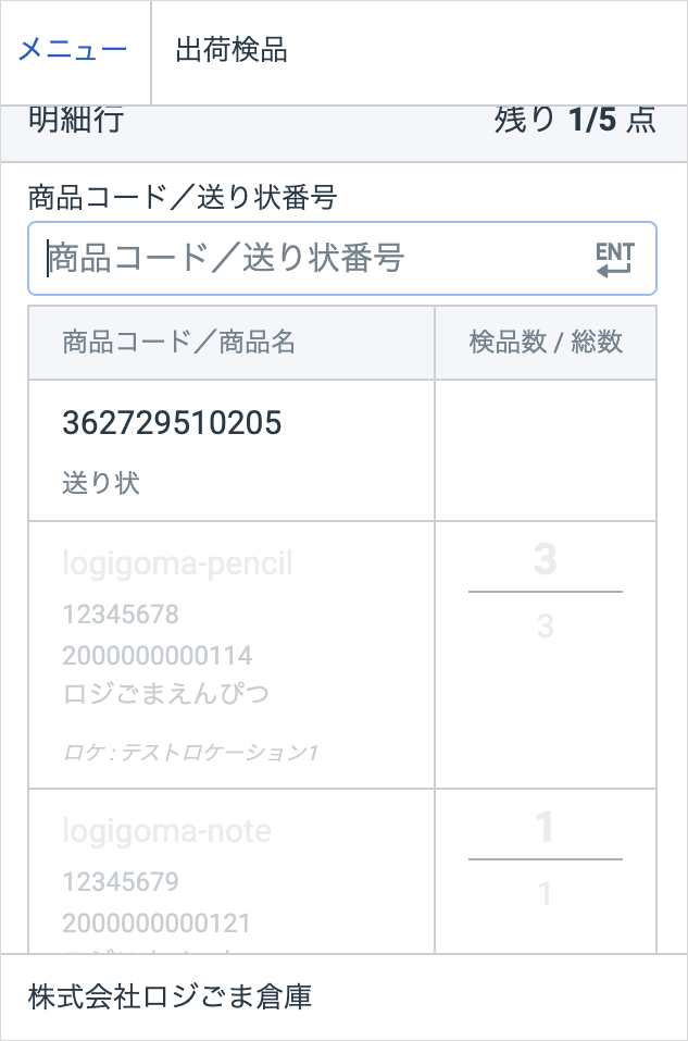 マルチプラットフォームの出荷検品/出荷検品(数量入力)/送り状後出し検品で、検品済み明細行の表示を変更しました。