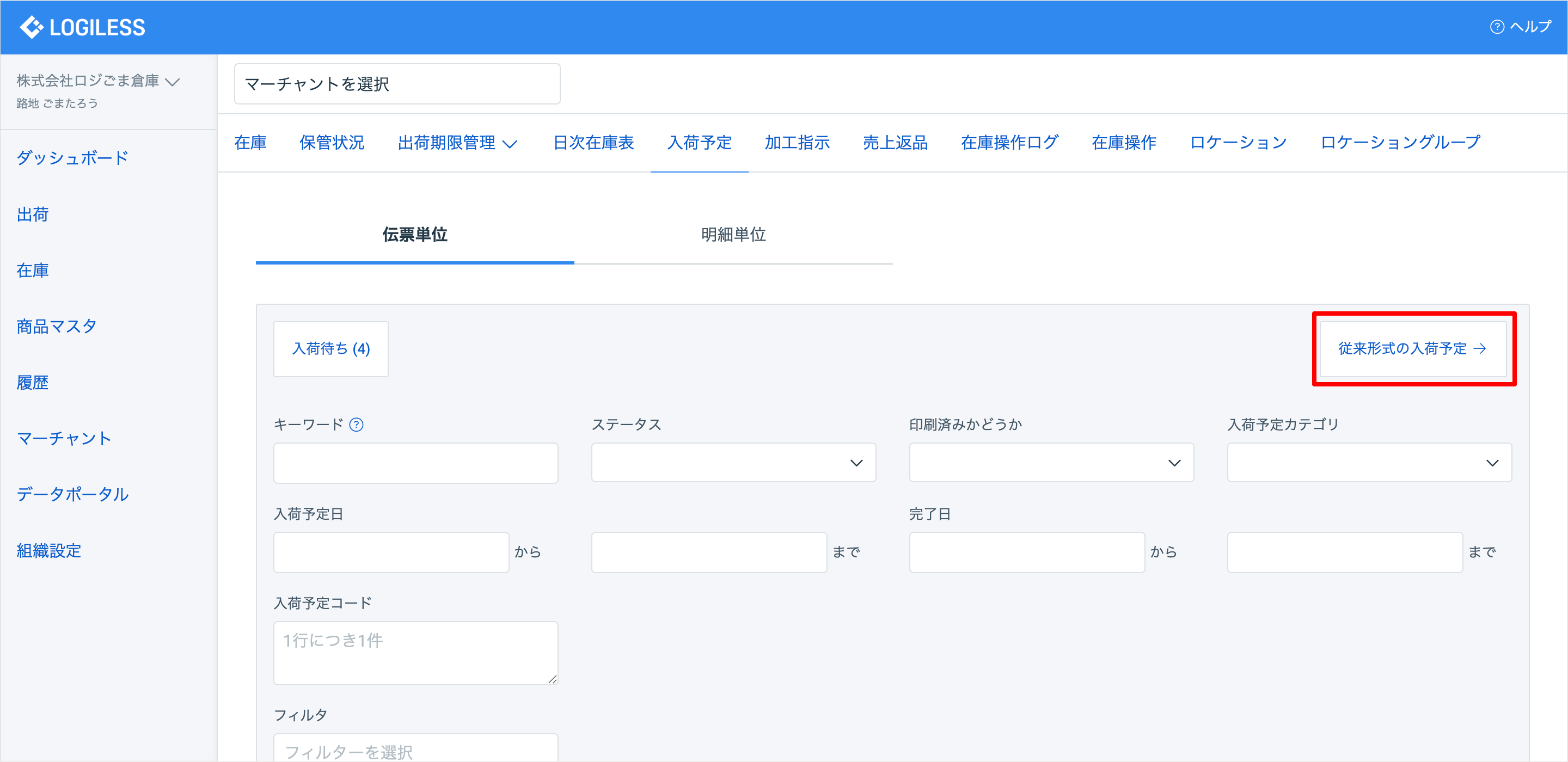 提供終了後は、マーチャントが入荷予定を登録し、オペレーターが入荷予定を参照して入荷する機能をご利用ください。