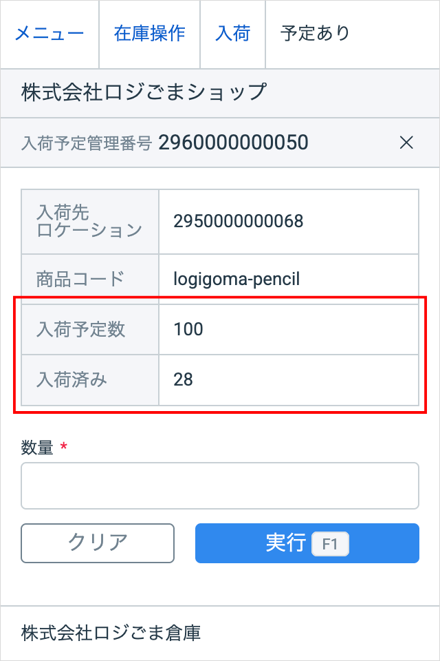 1. 入荷検品時に、入荷予定数、入荷済み数を表示できるようになりました