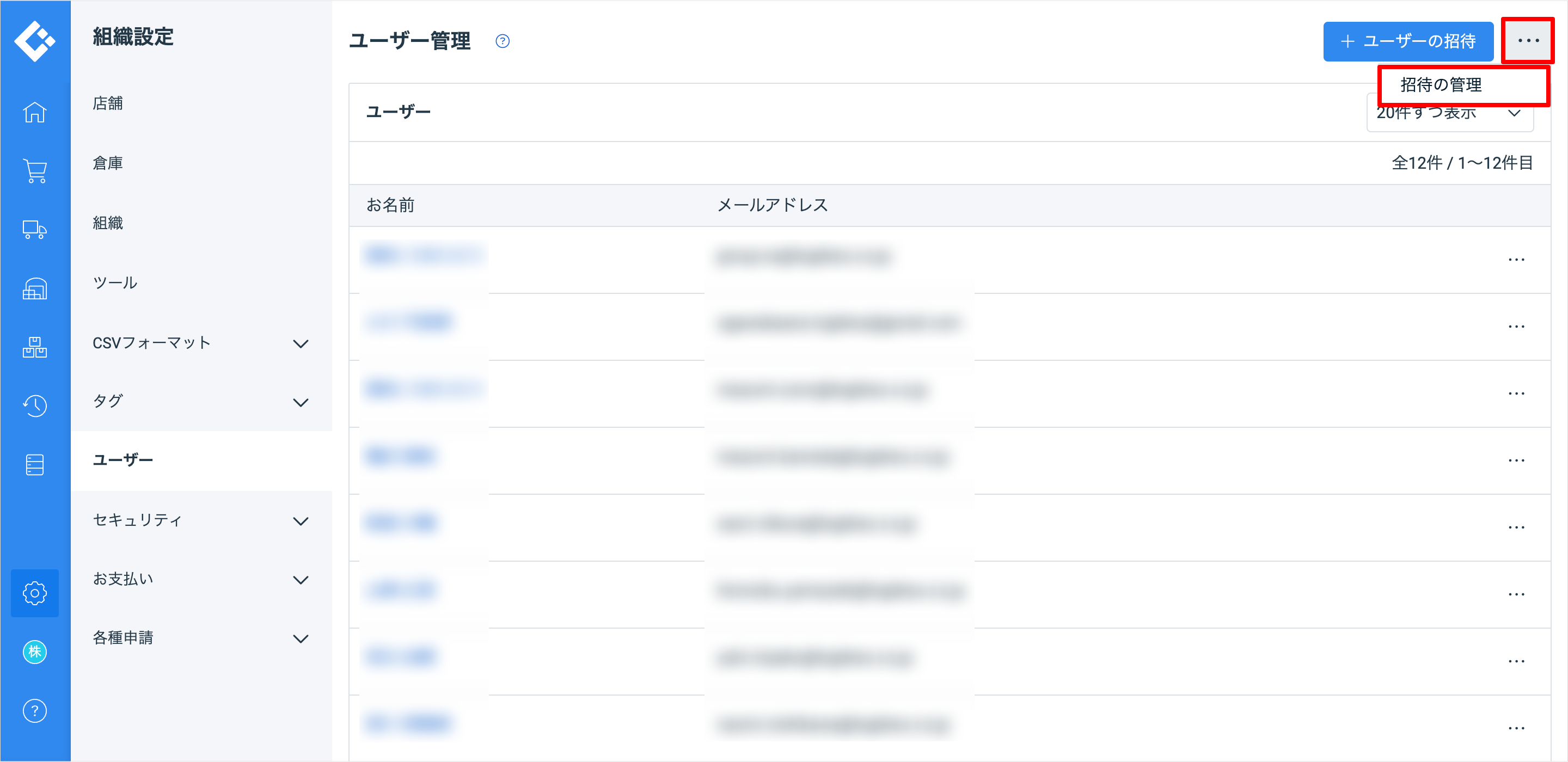 右上にある「…」のドロップダウンメニューの「招待の管理」を押します。