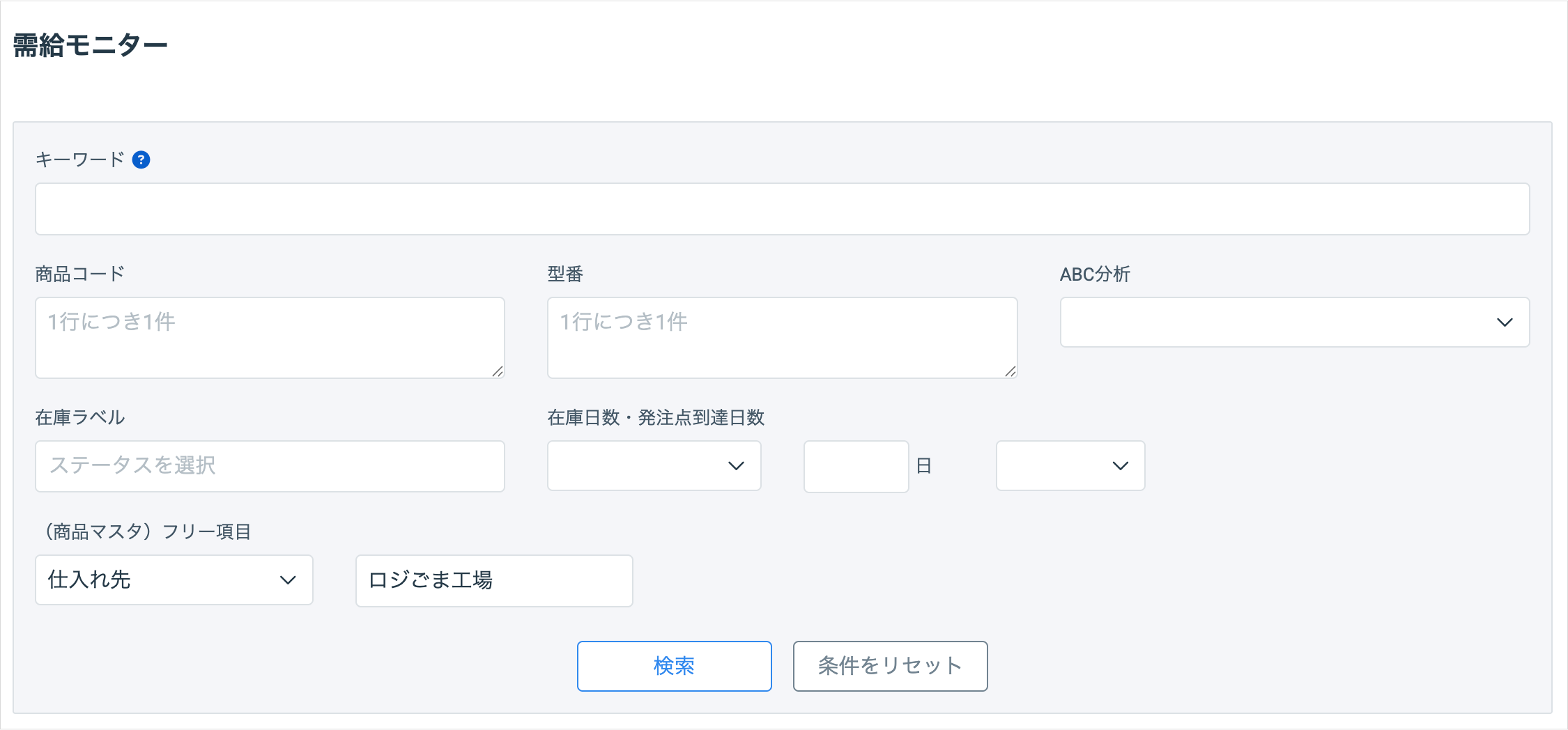 仕入れ先情報、商品カテゴリ、発注ロットなどをフリー項目に設定しておくと発注作業が便利になります。
