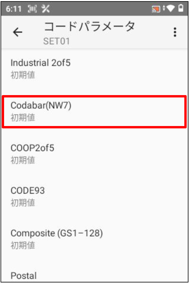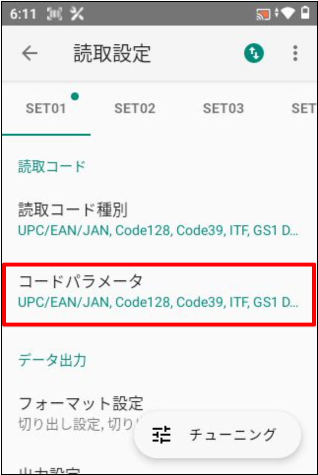 一覧から読取コードの「コードパラメータ」を押します。