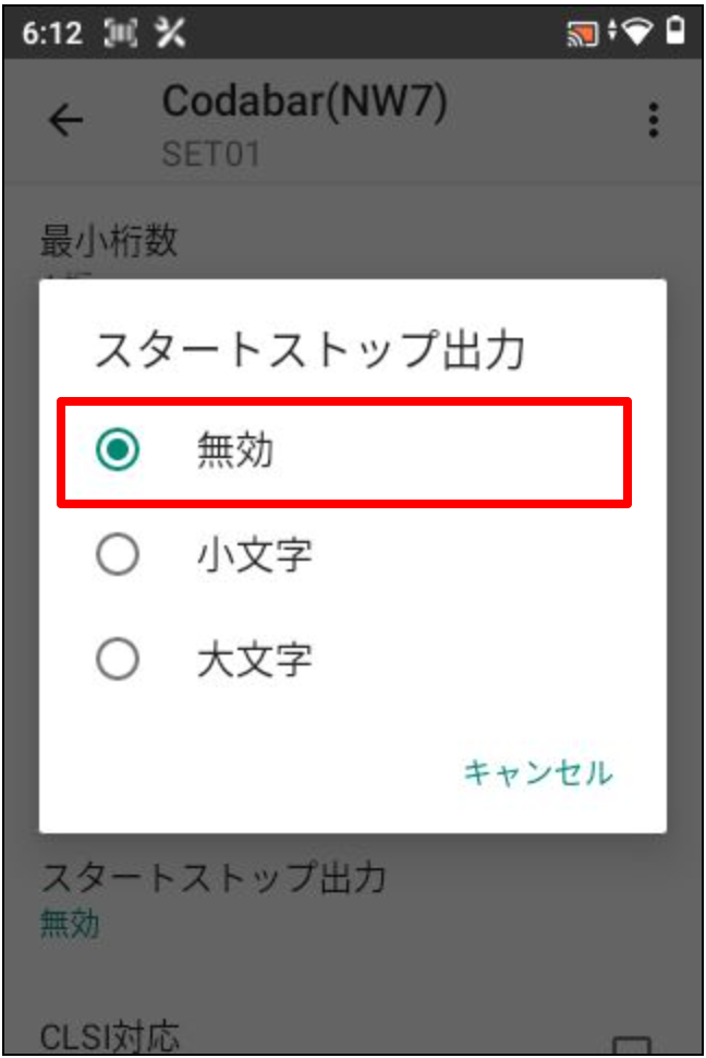 スタートストップ出力を無効にする(Code39/Codabar(NW7))