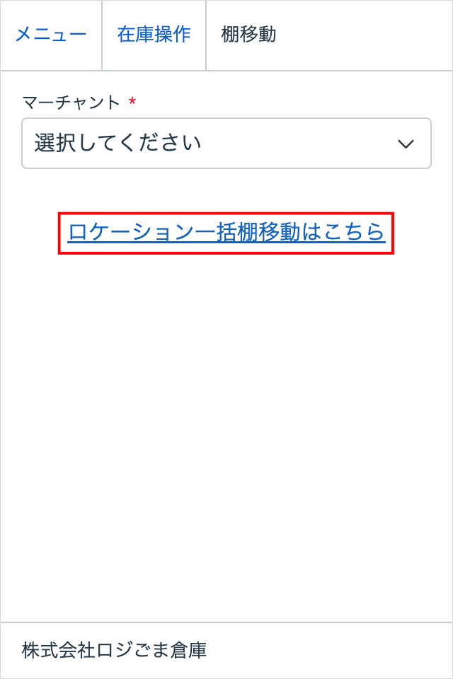 ロケーション一括棚移動の移動元ロケーションには、「保管中」もしくは「保留」ステータスの在庫のみのロケーションを指定できます。