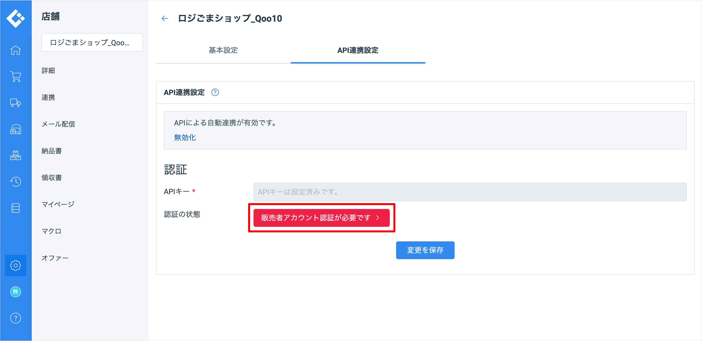 LOGILESSでは、Qoo10の販売者アカウント認証を利用して、受注情報、在庫情報の連携を行っています。販売者アカウント認証は1年間に1度の更新が必要です。