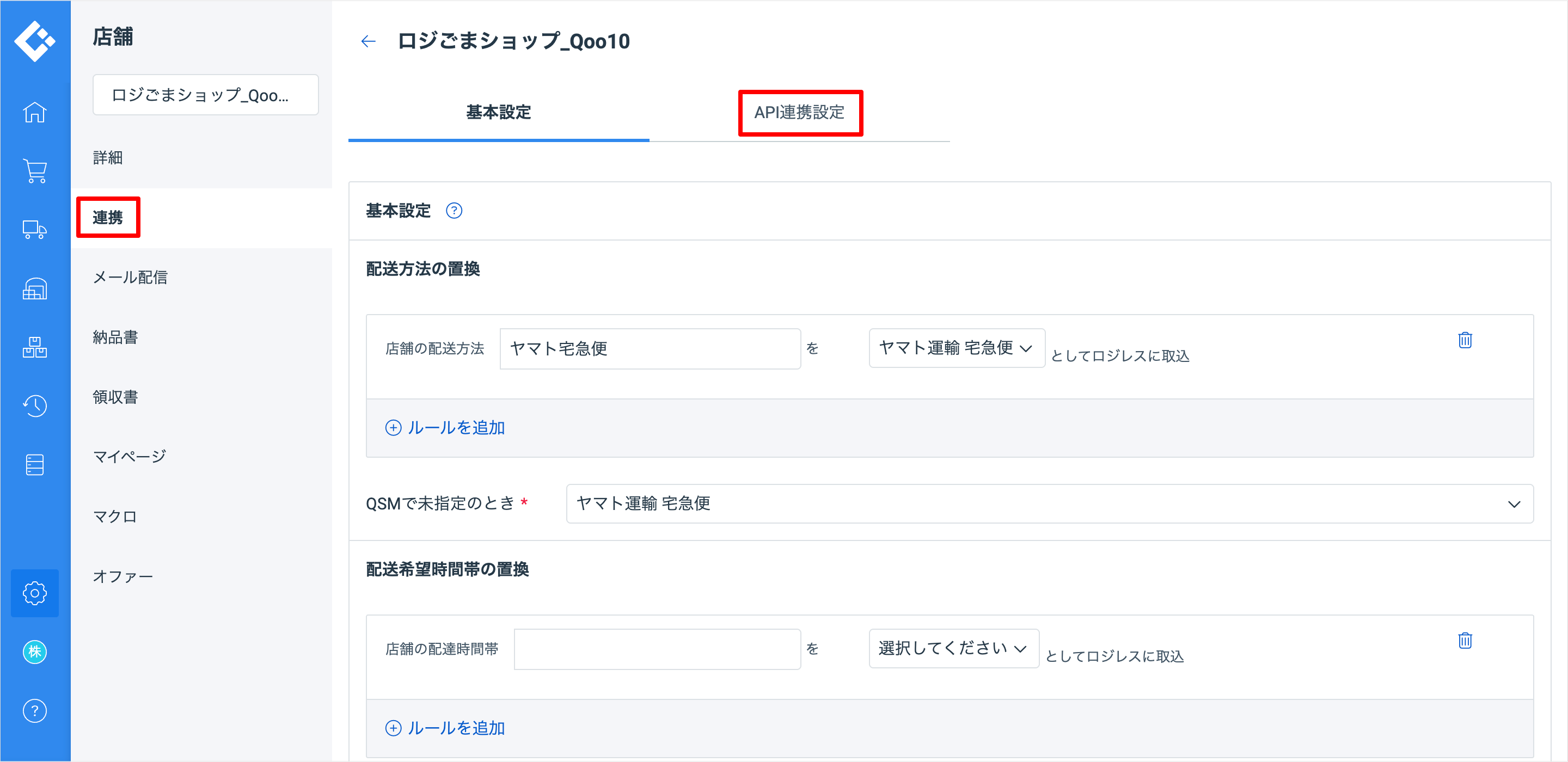 サブナビゲーションの「連携」を押し、「API連携設定」を押します。
