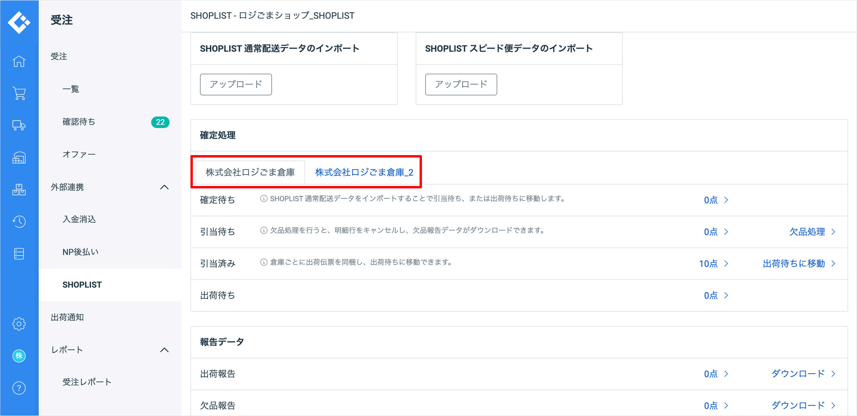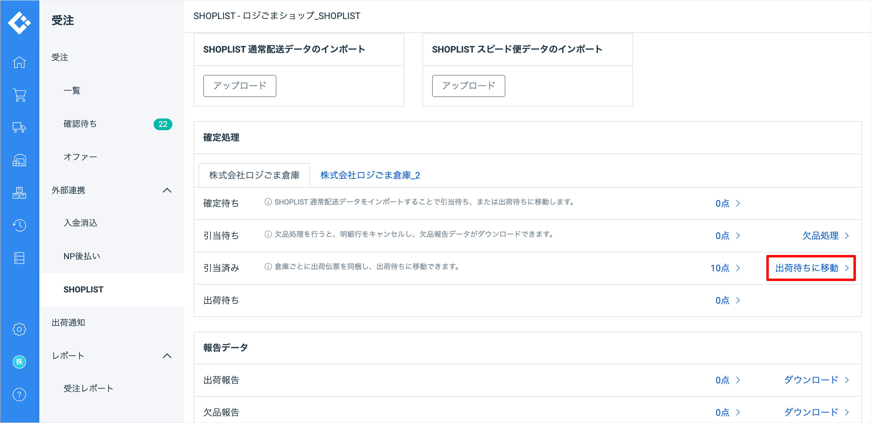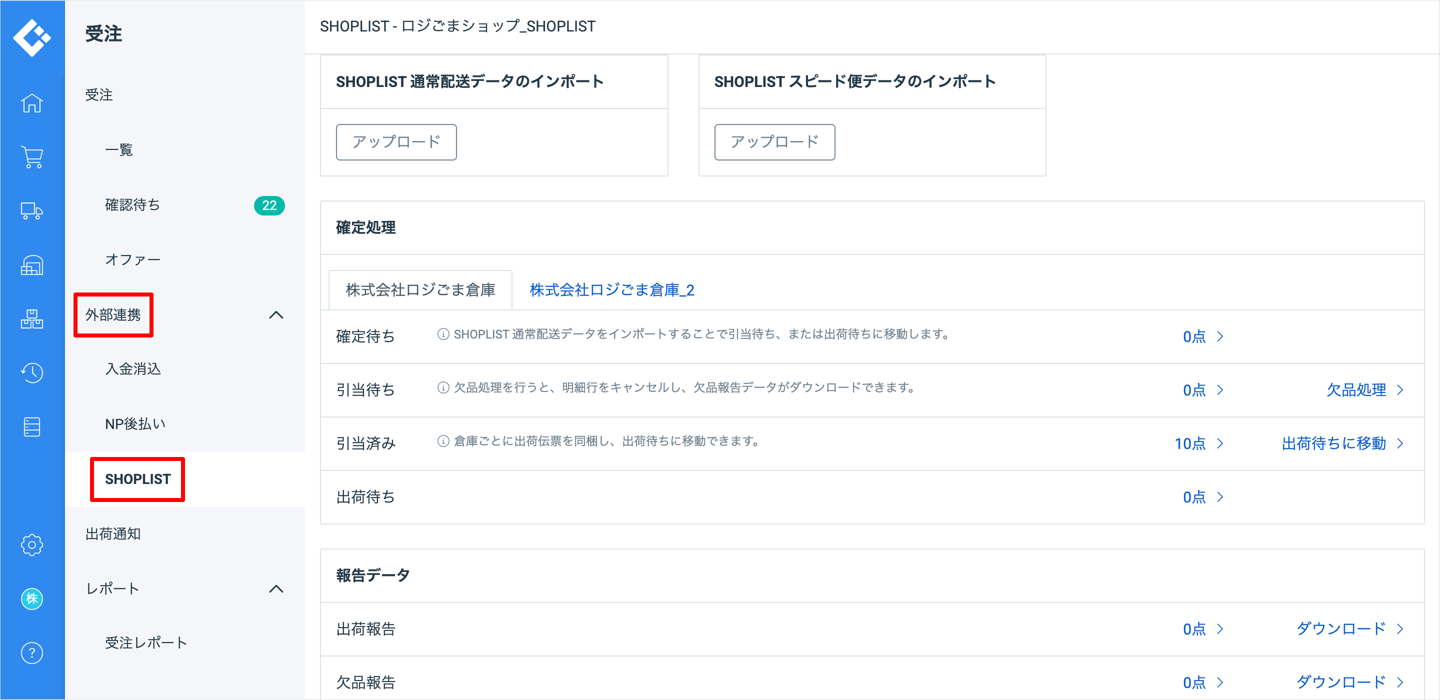 SHOPLISTからダウンロードした発注データをもとに受注伝票を有効化し、出荷内容を確定する必要があります。