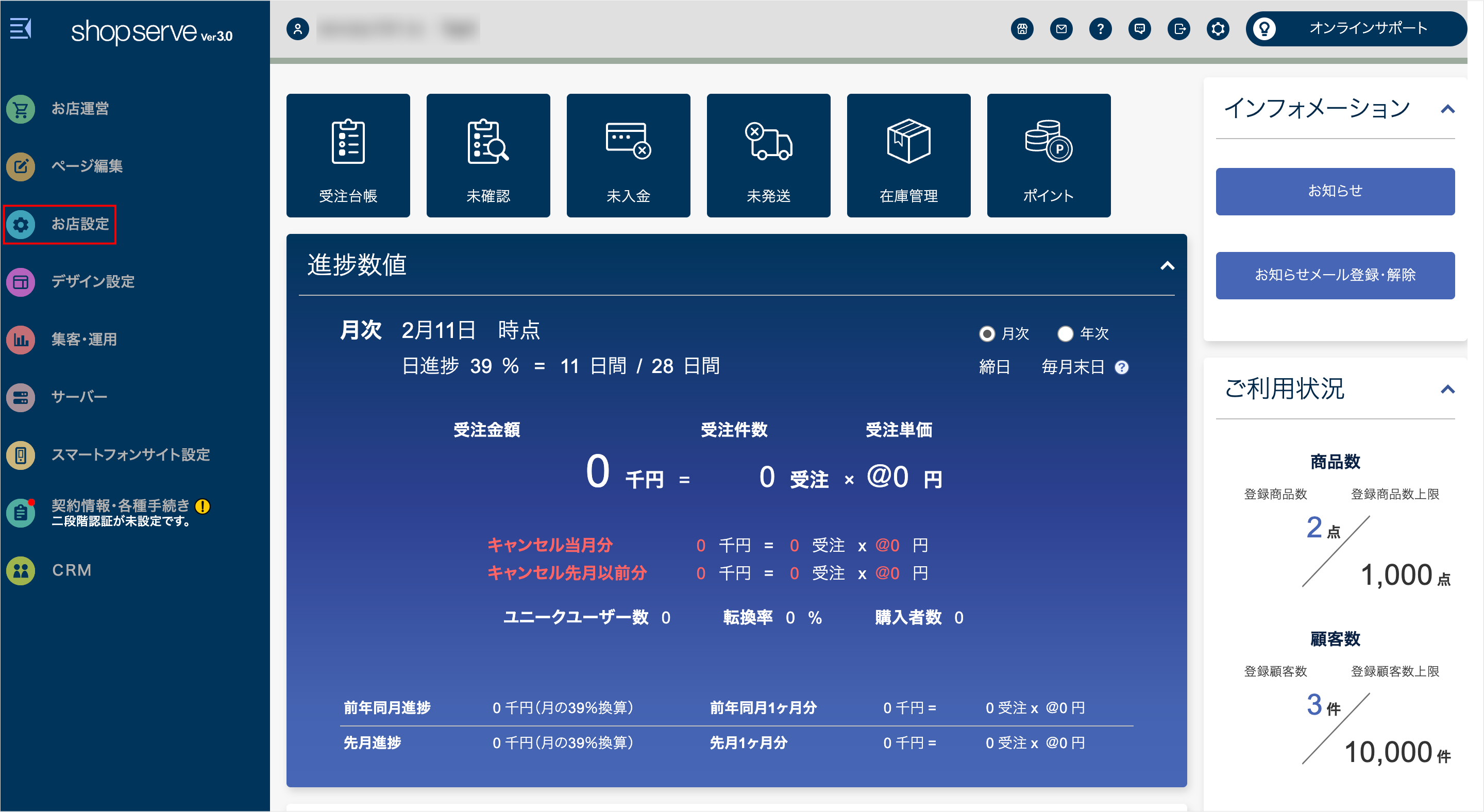 ショップサーブの初期設定