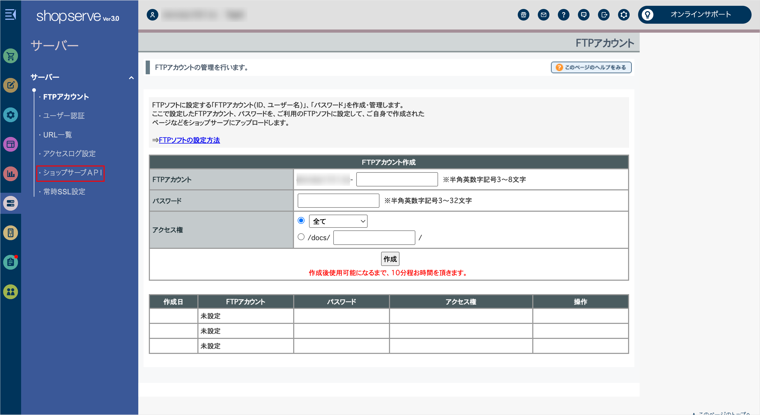 - ショップサーブで「ショップサーブAPI」の設定をする