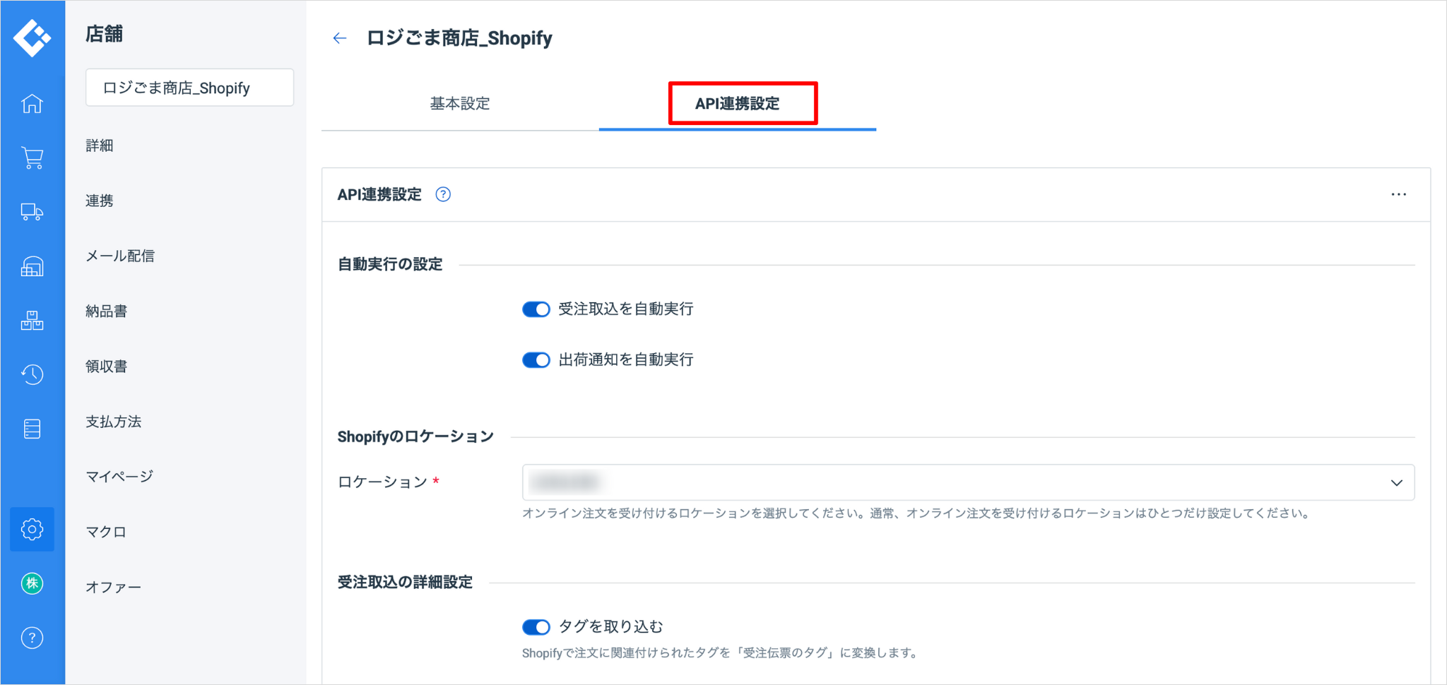 プラットフォームが「Shopify」の「店舗名」を押します。
