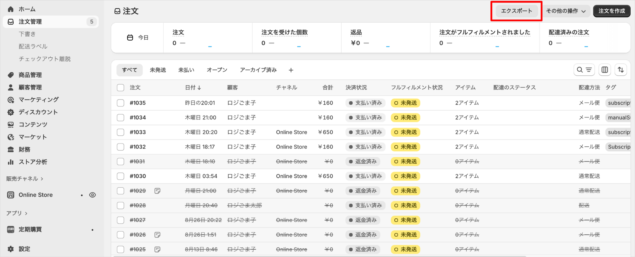 Shopifyの受注情報をCSVファイルで取り込みます。