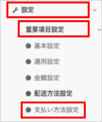 「設定」の「重要項目設定」を押し、「支払い方法の設定」を押します。