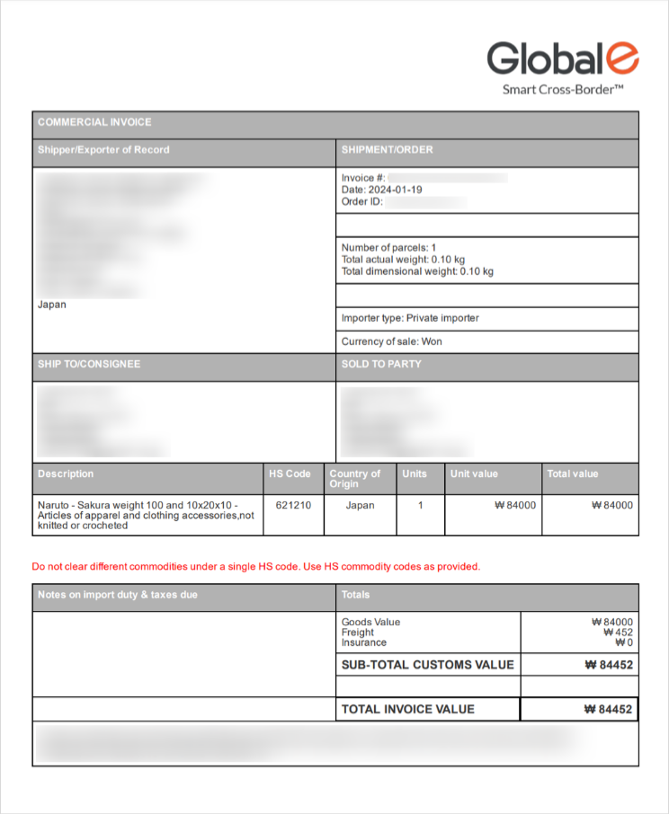 例えば配送先などの情報を変更しても、その情報はShopifyに反映されないため、Shopifyの注文情報をもとにGlobal-eから発行される送り状やインボイスの内容とずれてしまいます。